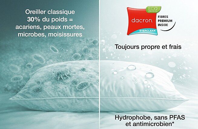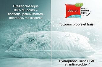 Approche intelligente de la literie pour des couettes et oreillers propres et frais pour longtemps grâce à la double technologie de Dacron® EverClean